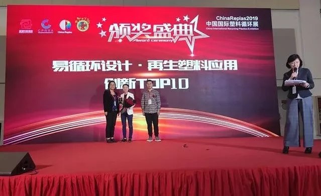 11月8日,在ChinaReplas2019中國國際循環展期間,塑料易循環設計&再生塑料創新應用TOP10頒獎典禮隆重舉行。